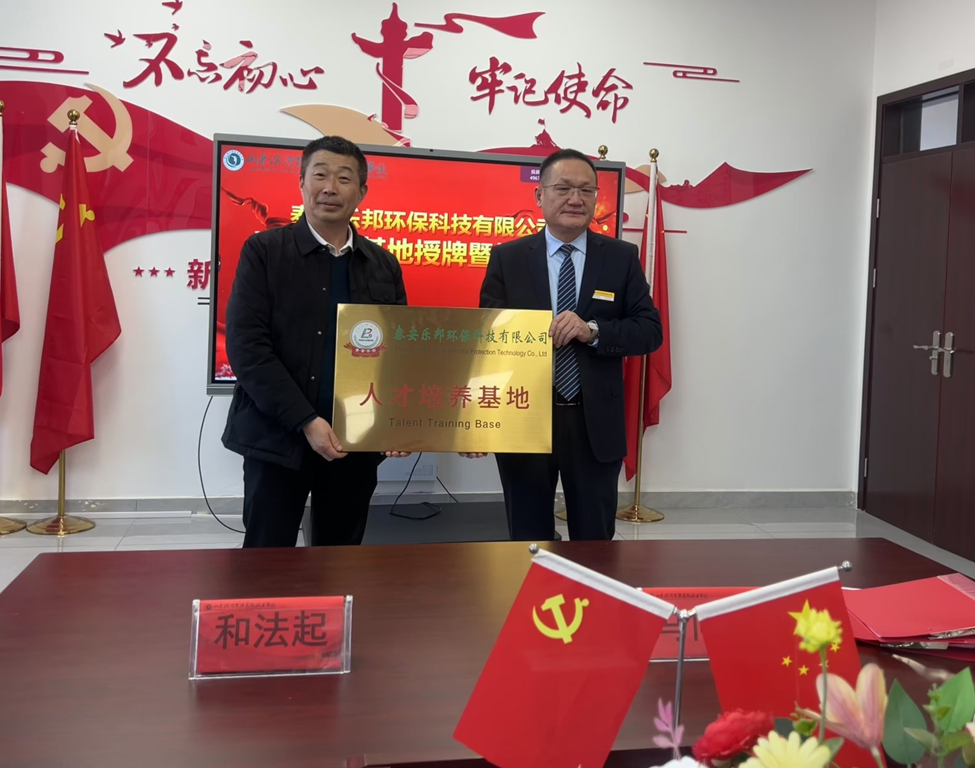 2025年1月16日,泰安樂邦環(huán)??萍加邢薰荆ê罄m(xù)簡稱泰安樂邦)與華大教育集團山東濱河能源高級技工學(xué)校(后續(xù)簡稱山東濱河學(xué)校)合作簽約儀式在學(xué)校方隆重舉行。泰安樂邦集團董事長和法起、運營總監(jiān)郭敏、綜合管理總監(jiān)吳旭,山東濱河學(xué)校黨委書記、校長馬向陽、副校長王生廣、就業(yè)處兼校企合作處主任薛程等領(lǐng)導(dǎo)出席簽約儀式。